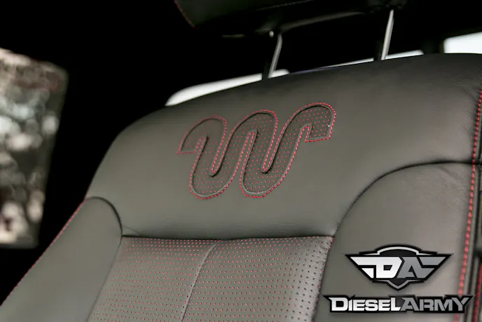 With the truck originally being a King Ranch, Olivo didn’t want to completely lose that feel with a custom interior. So, he worked with the guys at Katzkin to create a custom, “one off” King Ranch inspired leather interior. The seats are plush leather with the King Ranch logo in the seat back. The logo is, also, on the center console.