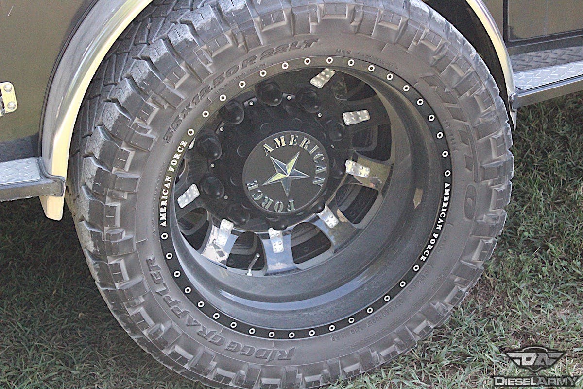 Keeping this thing cruising down the road is a set of American Force wheels wrapped in Nitto Ridge Grappler tires. The black and machined wheels, tone perfectly with the black and chrome accented truck.
