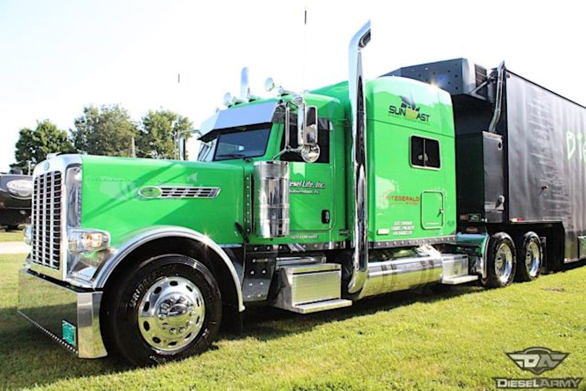 “It is a 2016 Peterbilt 389 Pride & Class Special Edition featuring a Fitzgerald Glider Kit,” said Ashely Feldkamp of Diesel Life. “The Peterbilt 389 Pride & Class Special Edition Glider Kit is touted as ‘The Icon of The Highway.’ It has plenty of upgraded features inside the cab and out which keeps us comfortable, safe, and proud.”