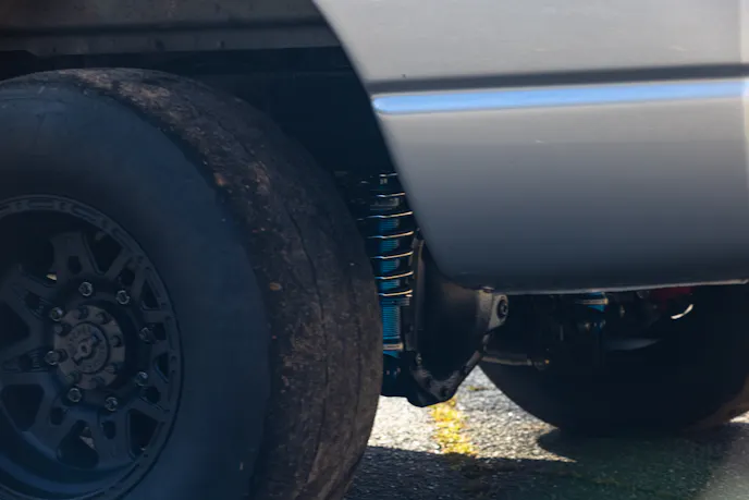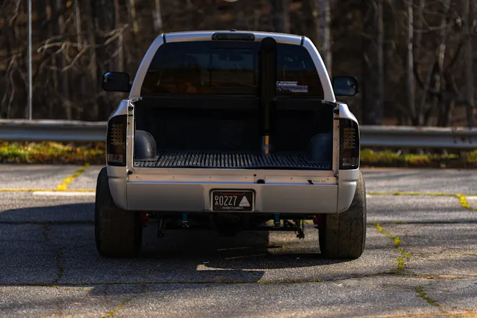 All of the front suspension stays intact except for Bilstein shocks. The rear did get some overhauling, with a combination of a four-link system from Firepunk Diesel, Afco springs, and shocks Chris can cut the sixty-foot he’s after. Speaking of sixty feet times, the right wheel and tire setup also factor in. 16×10 black Raceline wheels wrapped in 30/14R16 M&H slicks keep the Heavy four-door planted and spin-free.