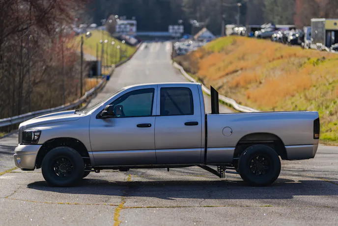 From looks alone, people stare and don’t know what to say. It sits at about factory height but sports slicks on all corners. The Cummins engine has evolved over the years, with the current generation sitting at 6.7 liters; Chris’s dodge came with the 5.9 common rail, a solid base to start on, but the newer 6.7 comes with many improvements.