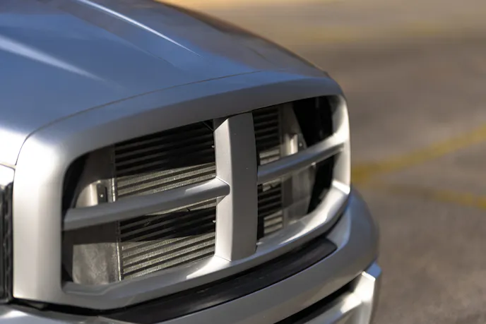 Getting the massive weight slowed down is a set of lighter and better performing 2nd gen Dodge Ram 2500 brakes. Like I stated earlier, the look comes from how it sits. The only thing aftermarket on the outside is a cowl hood and grille delete to show off a massive On3 Performance intercooler.