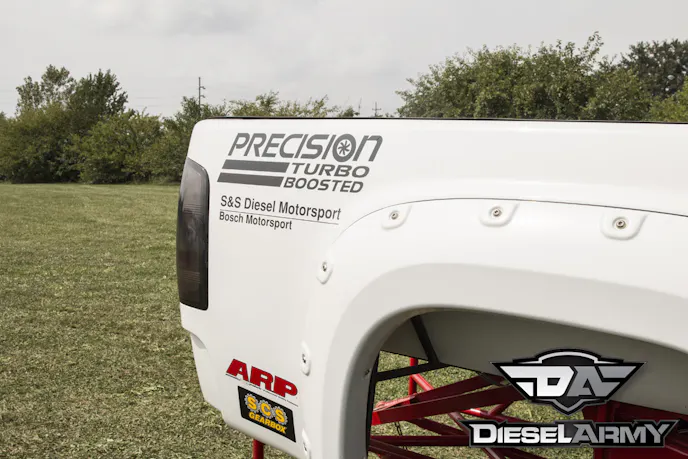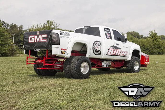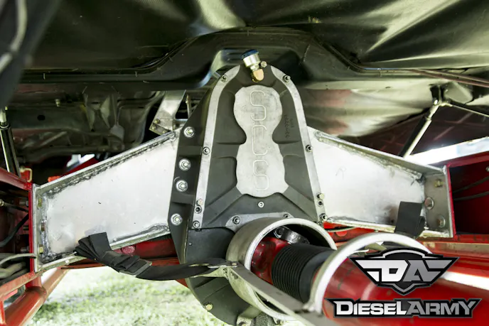 This setup is making about 1,700 horsepower at 4,000 rpm and 2,500 flb-ftof torque at 3,600 rpm. With this much power, putting it to the ground can be challenging. To ensure that Cummins Killer II is reliable, Kusilek turned to the guys at SCS Gearbox for a drop box. The drop box has two gear ratios, 1.64:1 and 1:1. The drop box is mounted on a Probell Racing Products bellhousing. A Molinari Racing Products (MRP) pressure plate and clutch assembly transfer the power back.