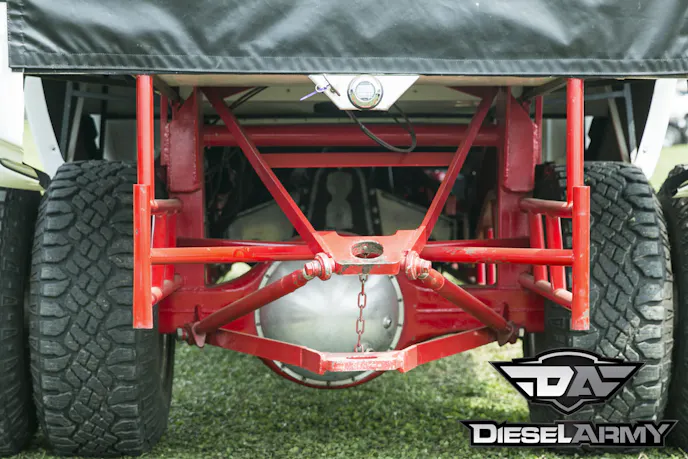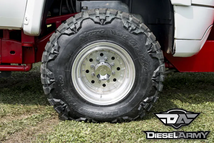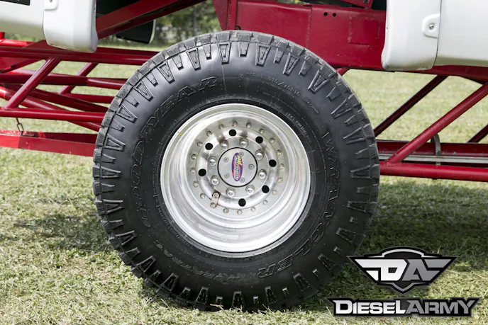 Both axles under Cummins Killer feature a 6.14 gear ratio and use Proformance Pros axles to turn the 16-inch Real Racing Wheels. The front wheels are wrapped by 35-inch Nitto mud grapplers. Out back, Kusilek opted to run dual Goodyear Wrangler Duratrac LT315/75R16s. With the sled responsible for stopping the truck on the track, there isn’t a big need for brakes on a pulling truck. Kusilek decided to remove the rear brakes and upfront, he opted to use a set of Proformance Pros brakes that are controlled with one of their master cylinders.