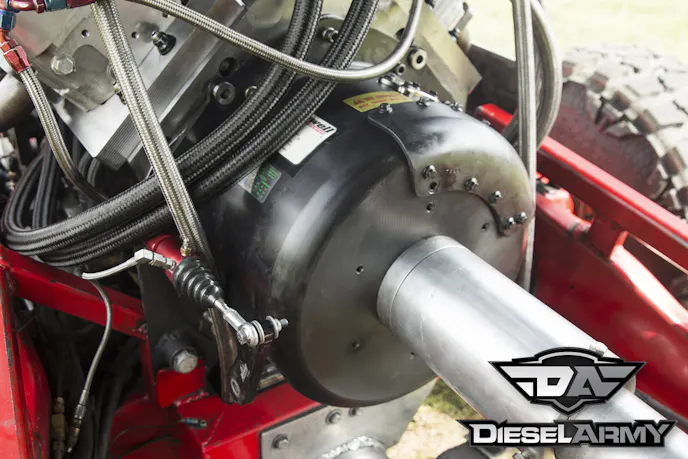 This setup is making about 1,700 horsepower at 4,000 rpm and 2,500 flb-ftof torque at 3,600 rpm. With this much power, putting it to the ground can be challenging. To ensure that Cummins Killer II is reliable, Kusilek turned to the guys at SCS Gearbox for a drop box. The drop box has two gear ratios, 1.64:1 and 1:1. The drop box is mounted on a Probell Racing Products bellhousing. A Molinari Racing Products (MRP) pressure plate and clutch assembly transfer the power back.