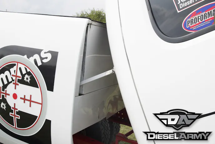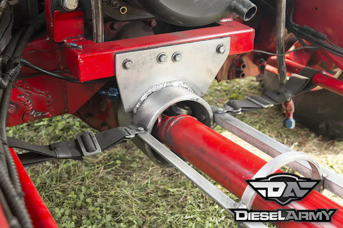 Both axles under Cummins Killer feature a 6.14 gear ratio and use Proformance Pros axles to turn the 16-inch Real Racing Wheels. The front wheels are wrapped by 35-inch Nitto mud grapplers. Out back, Kusilek opted to run dual Goodyear Wrangler Duratrac LT315/75R16s. With the sled responsible for stopping the truck on the track, there isn’t a big need for brakes on a pulling truck. Kusilek decided to remove the rear brakes and upfront, he opted to use a set of Proformance Pros brakes that are controlled with one of their master cylinders.