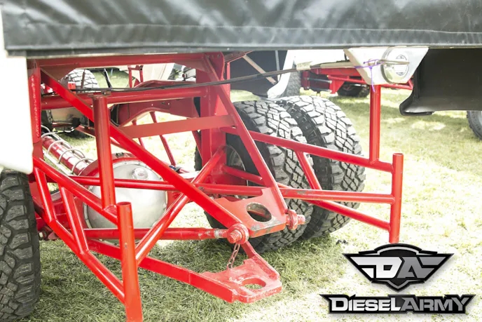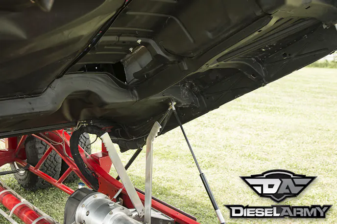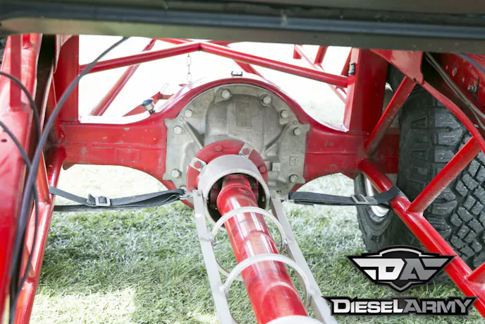 Both axles under Cummins Killer feature a 6.14 gear ratio and use Proformance Pros axles to turn the 16-inch Real Racing Wheels. The front wheels are wrapped by 35-inch Nitto mud grapplers. Out back, Kusilek opted to run dual Goodyear Wrangler Duratrac LT315/75R16s. With the sled responsible for stopping the truck on the track, there isn’t a big need for brakes on a pulling truck. Kusilek decided to remove the rear brakes and upfront, he opted to use a set of Proformance Pros brakes that are controlled with one of their master cylinders.