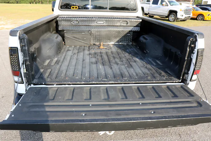 Out back, Alec installed a 2008 Super Duty tailgate (also color-matched by Herbie) along with the factory rear bumper. The tailgate features black “SUPER DUTY” lettering and a white and black oval emblem to match the front. The door and tailgate handles were also given a spray of Oxford White paint to match the rest of the truck.