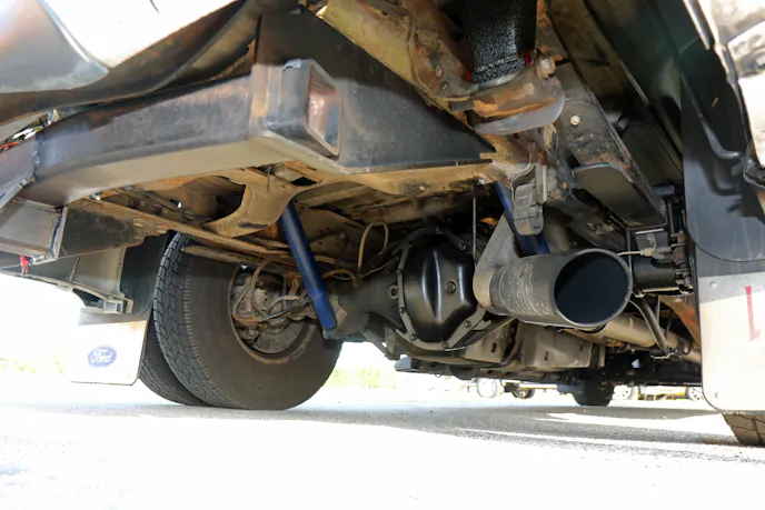 The PowerMax turbo inhales fresh air through a K&N cold air intake system. They also went with a set of Warren Diesel Injection premium 175/30 fuel injectors fed by the factory fuel system. Tuning is handled through the factory ECU with performance tunes from Warren Diesel Injection to get the most out of the 6.0-liter mill without pushing it into catastrophic territory. Alec estimates that the truck is making around 550 hp with around 900 lbs-ft of torque to motivate the low-slung dually quite well.