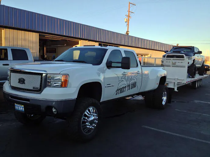Now that we have gotten a good look at one of their vehicles, it’s time to take a tour of the second one. Dustin Mileham’s 2009 White GMC 3500 powered by a Duramax is currently the “shop truck.”