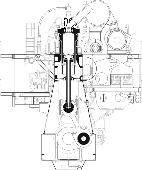 In every way, the Wartsila RT-flex96C is unlike conventional diesel engines, as can be seen in this diagram. Extremely reliable, powerful ad efficient, it is also on a scale that dwarfs every other engine in operation today.