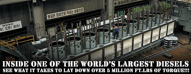 In looking back through the development of diesel engines, there’s no question displacement has always been an integral part of their powerful equation. But today, the concept has been expanded to dimensions that are truly hard to imagine. As with every mechanical advancement that’s come before, know that ever larger ships are already in the works worldwide, and for these applications not one, but two of these giant engines will churn the ocean blue with twin screws.