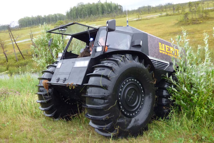 If there’s one thing you can say about Russian machinery, it’s that it never lacks for size. In league with the world’s biggest airplane (Antonov An-225) and helicopter (Mil Mi-26), the world has now been given another Ruskie behemoth in the form of the ATV (All Terrain Vehicle) by Sherp International, based out of St. Petersburg.