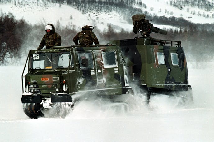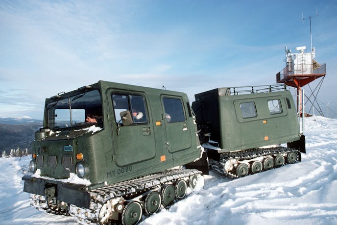 The Bandvagn 206 was built by Hägglunds in the 1970s and was meant for the military, who accepted it into service in 1980. Nowadays, more than 37 countries still use the vehicle. Two units – a tractor and trailer – make up the total vehicle, and all provide power to the ground, thanks to an articulating joint that also handles steering duty.