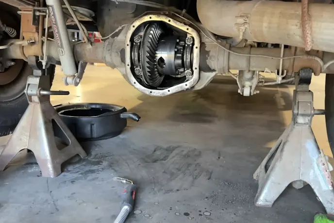 With the truck moving under its own power again, the next logical step was obvious: weld the rear differential. Why? Because one-wheel peels are lame. Justin laid down some serious beads, creating the infamous HTP Locker. After that, it was burnout time to test the welds (and destroy the tires). The truck ripped surprisingly hard, proving someone had put a tune on it. Then, they hit the dirt track for some jumps, because why not?