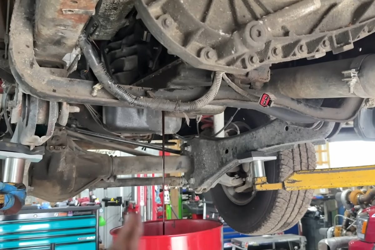 While the good truck was getting painted, they couldn’t resist grabbing another bargain: a beat-up 6.0-liter Power Stroke F-250 for just $2,000. The plan was always to yank the drivetrain, but first, they had to see if it even ran right. The seller wasn’t kidding about the transmission slipping – the reverse was totally shot. Justin pulled the pan, took one whiff of the burnt fluid, and confirmed the direct clutches were toast. No big deal, though; they had a spare 5R110 transmission sitting around from an old project and slapped it in, along with a working transfer case.