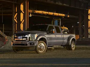 The 2015 Ford F-450 tops the F-Series Super Duty pickup truck lineup with maximum towing and hauling capability. Changes for 2015 include a strengthened frame, suspension, new commercial- grade 19.5-inch wheels and tires, and core work components shared with F-Series Super Duty chassis cab models.