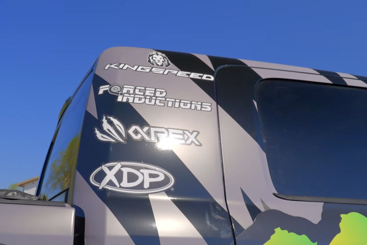 But high-horsepower builds rarely go smoothly. A blown head gasket during a test drive threw a wrench in their tight schedule for the truck’s custom Ken Block inspired Hoonigan tribute wrap.