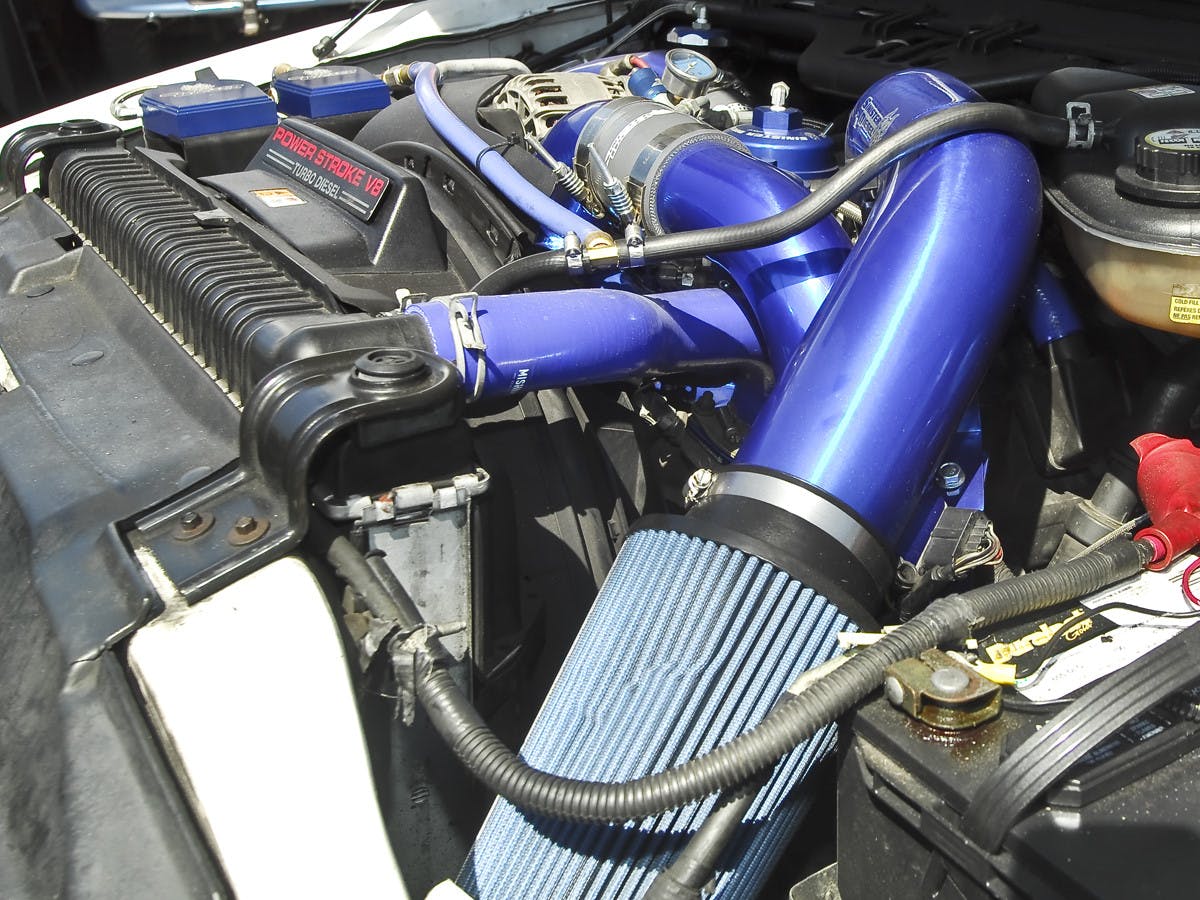 Upgraded 175 injectors a cold air intake, coolant filtration system, and a diesel bypass oil filter system from Sinister Diesel reside on the top of Power Stroke. The factory turbocharger was replaced with a Barder Stage 3 turbocharger.