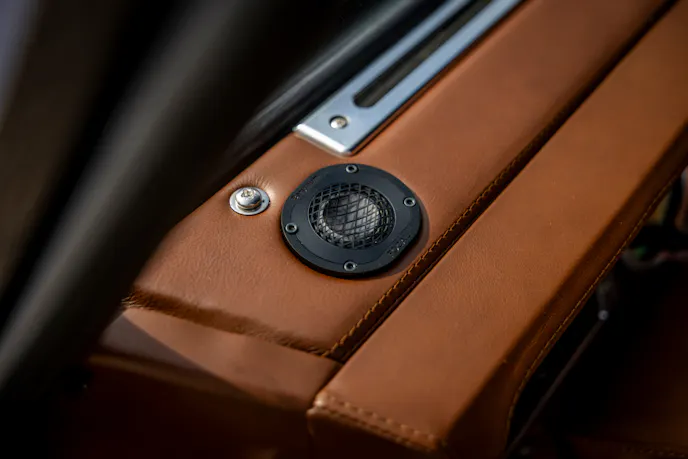 Another defining element of the build is the paint. Vesper is finished in Dark Sapphire Blue, matched to the owner’s Bentley Flying Spur. Helderburg says every panel was removed and painted individually before reassembly, so the finish remains deep and consistent across seams, panel gaps, and edges.