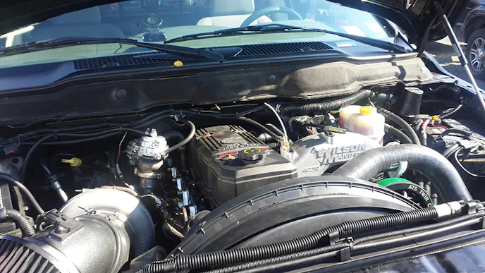 Eldreth assembled an impressive host of parts to add to the truck. The bottom end of the motor remains stock, but the top end has been upgraded with Hamilton Cams’ valve springs, ARP head studs, and Exergy Performance 200-horsepower injectors. To support the necessary fuel requirements, Eldreth opted to run a set of ATS Dual Fuelers and a FASS Titanium 220 pump.
