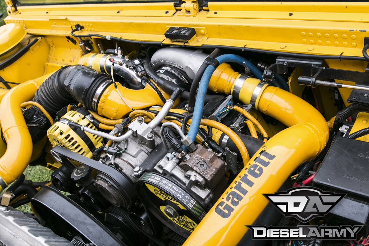 Because of how the radiator mounts in the H1, Hieserich couldn’t use an engine mounted fan. After spending quite a bit of time looking around, he eventually settled on a dual fan setup off of a Ford Taurus. The final piece of the puzzle was the intercooler. Hieserich turned to Griffin again and had a custom intercooler fabricated to work with everything.