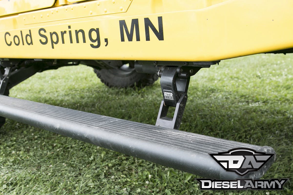 With the truck sitting proud, he needed an easy way to get into the truck, so a set of AMP power running boards that were designed for a Jeep TJ were installed.