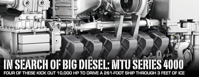 Today, we present a set of diesel engines from MTU, one of the world’s-leading manufacturers of diesel engines and propulsion systems for ships, and heavy land, rail, and defense vehicles. Four of the MTU 4000 Series four-stroke diesel engines power the Sikuliaq, an ice breaker that was specifically engineered and constructed for oceanographic research. The 261-foot double-hulled Sikuliaq can operate year-round, and is capable of breaking ice almost three-feet feet thick, making it uniquely equipped for polar and sub-polar research.