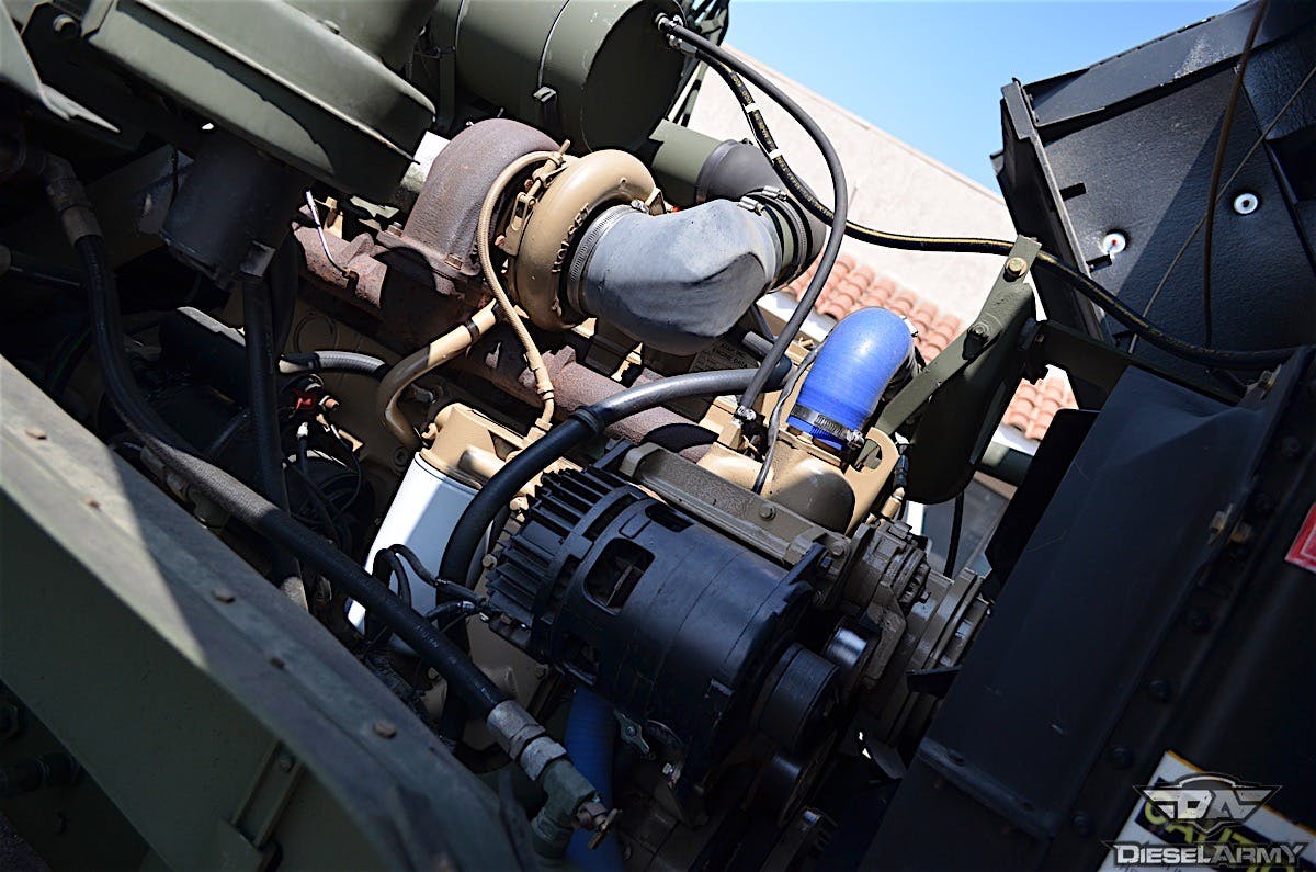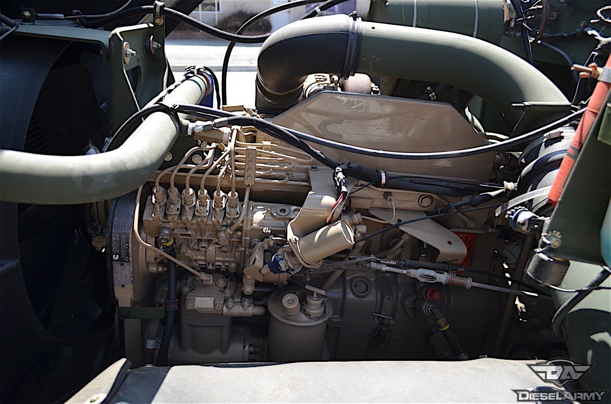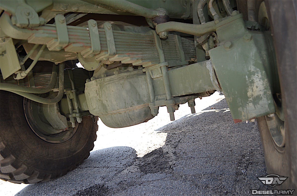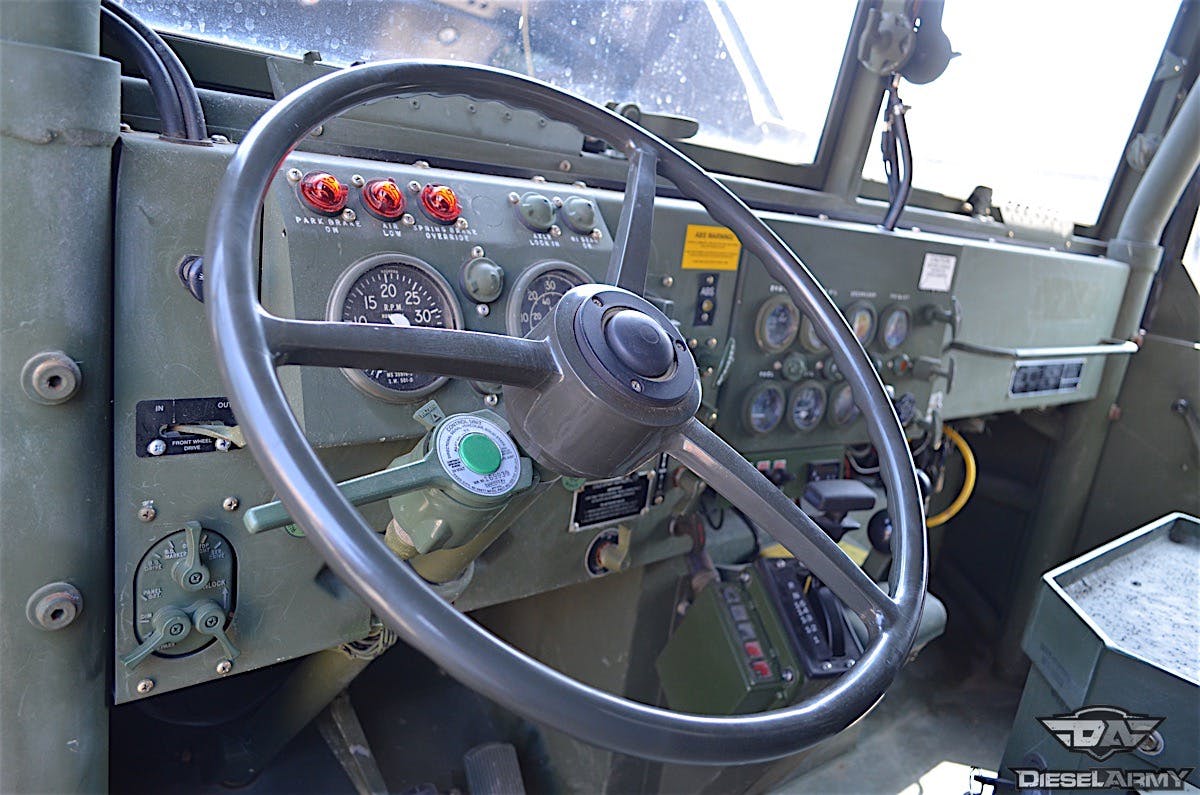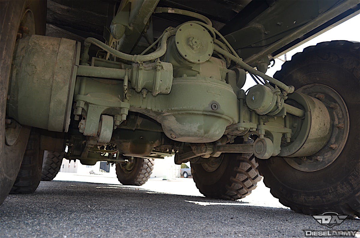That motor is hooked to an Allison five-speed automatic transmission and a two-speed transfer case to get the power to all six wheels through three five-ton Rockwell axles.