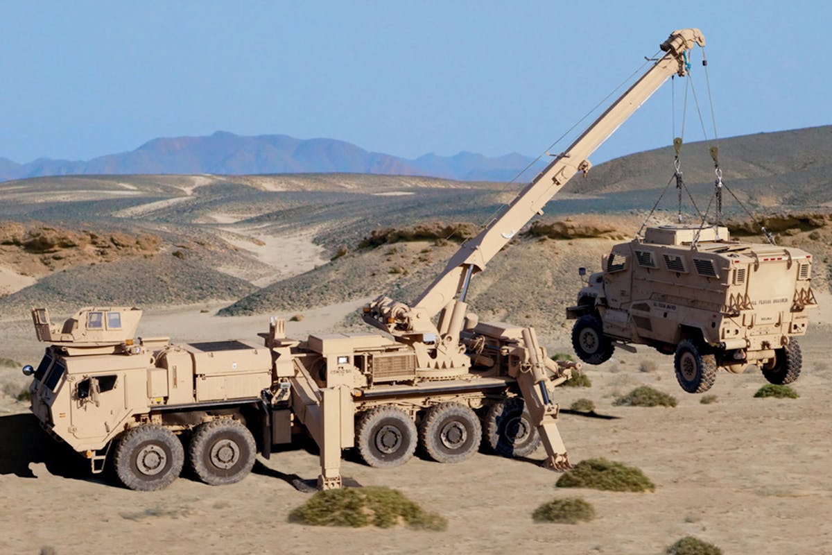More recently, the Multi-Mission Recovery System (MMRS) prototype was developed by Oshkosh as a demonstrator vehicle. Based on the LVSR, the focus of the MMRS design is heavy-duty vehicle recovery. It features a Jerr-Dan 50-ton rotating boom that extends more than 41 feet, allowing for the retrieval and towing of MRAPs, as well as some of the largest tactical wheeled vehicles currently in use.