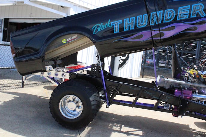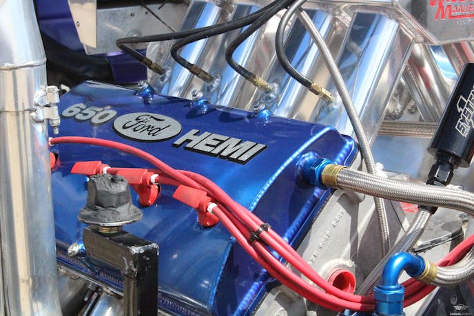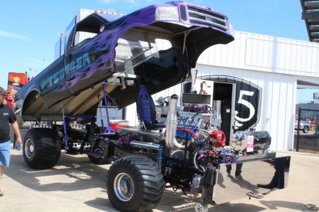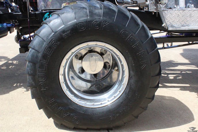 This famous Ford is no stranger to horsepower. The 650 ci Boss 429 Hemi is cranking out 1,450-horsepower. Getting all those ponies to the ground are these monster cut pulling tires. It was necessary for hearing protection just hearing this monster run.
