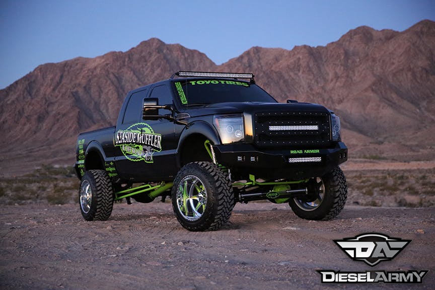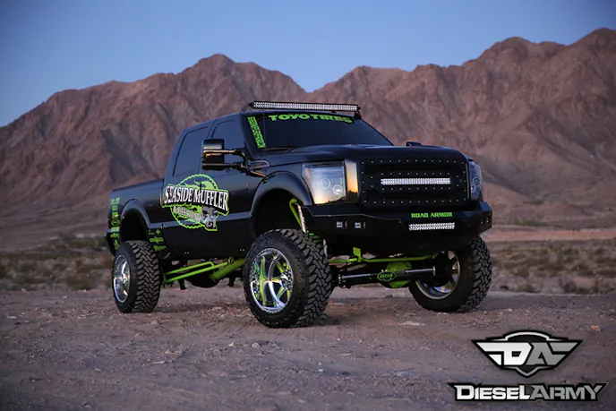 How do you stand out in a crowd that is constantly being assaulted by customized vehicles? This is certainly a challenge that many project vehicle builders face when building something for the SEMA Show. Some go with crazy graphics, others go with insane engines, while others turn their attention to one off interiors. Then you have the suspension crowd, extreme highs, or extreme lows to get some attention. With a minimum clearance of 8-feet, Tim Wing from Seaside Muffler and Off Road decided to go up, way up, to stand amongst the giants at the show.