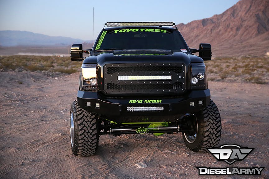 Now that the truck is sitting pretty and riding right, Wing turned his attention to modifications in the front of the truck. Helping to give the truck an aggressive look, he called up the guys at Road Armor and picked up a new lighted front bumper along with the matching rear bumper. The bumper was then fitted with two sets of Rigid Industries D-Series LED lights and one of their 20-inch E-Series light bars in the center. If that wasn’t enough light, Wing then installed one of a Rigid Industries new grilles with a 30-inch E-Series LED light bar. Up top, he installed a 50-inch E-Series light bar as well. Finally, the headlights were swapped out for a set of Recon’s as well as the rear taillights. Needless to say, the lighting package on this truck is quite extensive and he can certainly light up the night.