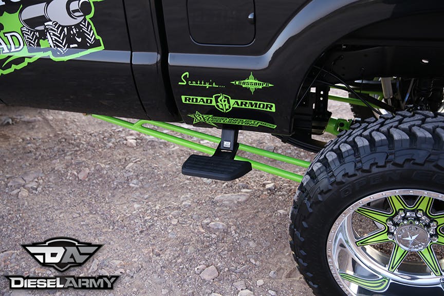 To round out the exterior, Wing turned to Extang for their Express Tonno, tonneau cover. The he rolled into Matt’s Window and Tint for a dose of darkness. Some of the other exterior features that were added, but aren’t always noticed are the steps. With the truck so high off the ground and Wing actually using this truck daily, he installed a full treatment of AMP Research steps. He started with their original Powerstep along the doors, but then opted for their Bedstep and Bedstep 2 to make getting things out of the bed much easier.