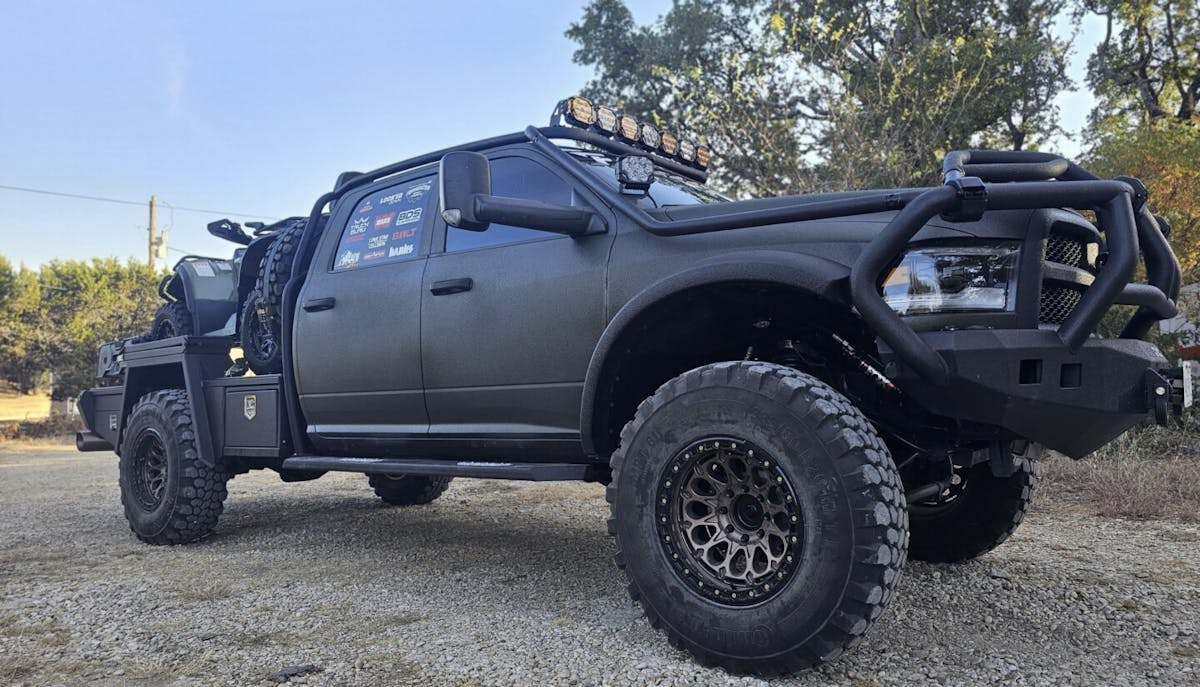 Rolling attire consists of 20-inch Fittipaldi Off Road beadlock wheels wrapped in Continental MPT81 tires (MPT standing for Multi-Purpose Tires). Impressive stopping power comes courtesy of an SSBC big-brake kit. On-board air with chucks at each tire and in the rear bumper allow Stephen to air-up with ease after a day of play in the woods.