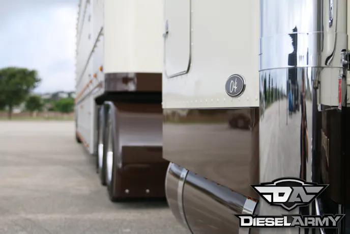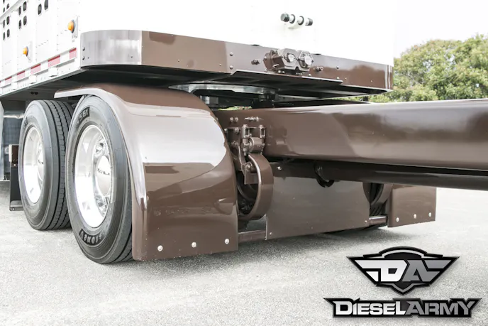 Another subtle modification Miller did was to take the wheel off and have the holes enlarged. Picket Custom Trucks takes the stock 22.5-inch wheels and gives them a custom look, even though they are the original wheel. The wheels are wrapped by 275/80R22.5 Michelin tires.