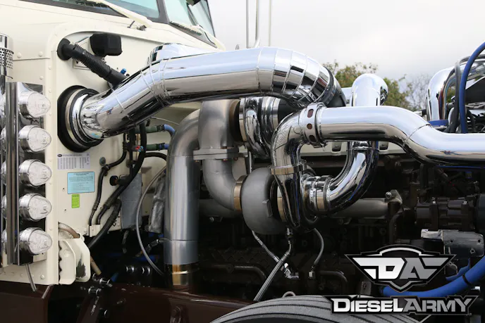 While PDI was working on the engine, they went ahead and sent a bunch of the parts out to be chrome-plated. The CAC tubes, steering shaft, fuel filter housing, coolant tubes and miscellaneous parts really pop against the brown on the engine.