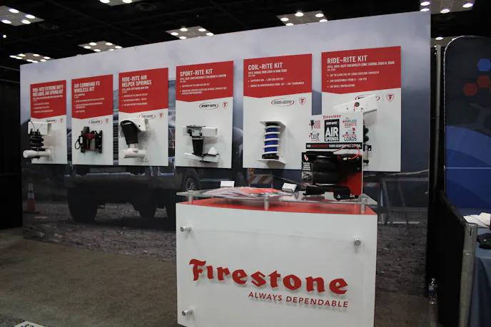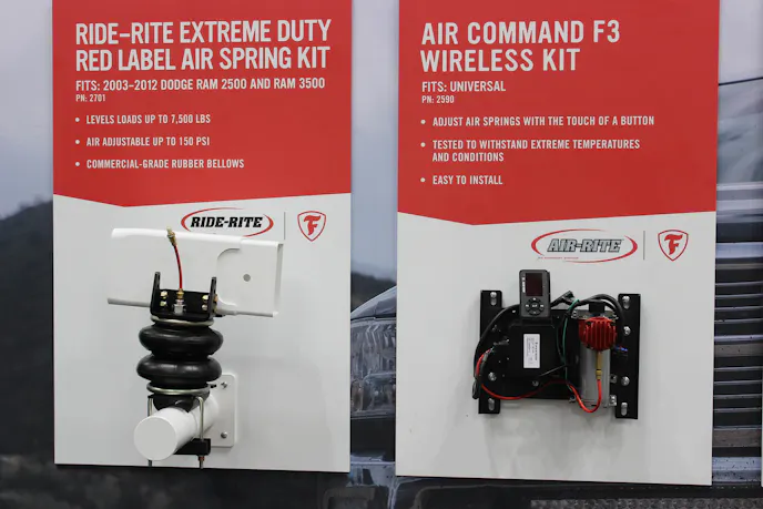 Here at the PRI Show, we’re making our way through every nook and cranny. Were looking at the latest and greatest, and among them is Firestone Industrial Products and its Ride-Rite Extreme Duty Red Label air spring kit.