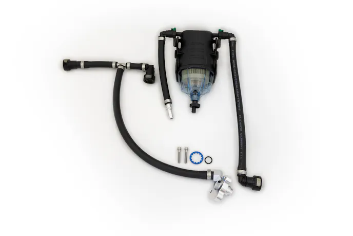 The other improvement is what happens to the debris once it exits the pump case; the Gen2 kit features a 2-micron filter in a clear firewall-mounted housing that prevents debris from reaching the tank, fuel lines, and supply pump. It can be visually inspected at a glance for debris, which will give notice to a failed pump. Previously, those enduring a CP4 failure with the first-gen bypass kit installed would still need to drop the tank and deal with all of the debris created by the failed pump.
