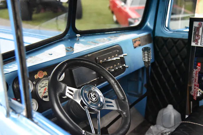 The NH engines were six-cylinder mills displacing 743 cubic inches. The heads feature four valves per cylinder and were a cross-flow design (intake and exhaust on opposite sides). Naturally aspirated, these engines typically delivered 200 to 220 horsepower. These were found in the ’40s through the late-’60s Kenworths, They were the powerhouse diesel truck engine of their dayThe engine under the narrow hood is built with reliability in mind, so performance mods were kept to a minimum. “The engine came from a Ram truck,” says Thomas, “It’s 12-valve Cummins with an NV 4500 manual transmission bolted to it. The engine was rebuilt to stock specs., but the fuel pump has been turned up and the turbo was upgraded with a replacement one from VS Racing.”