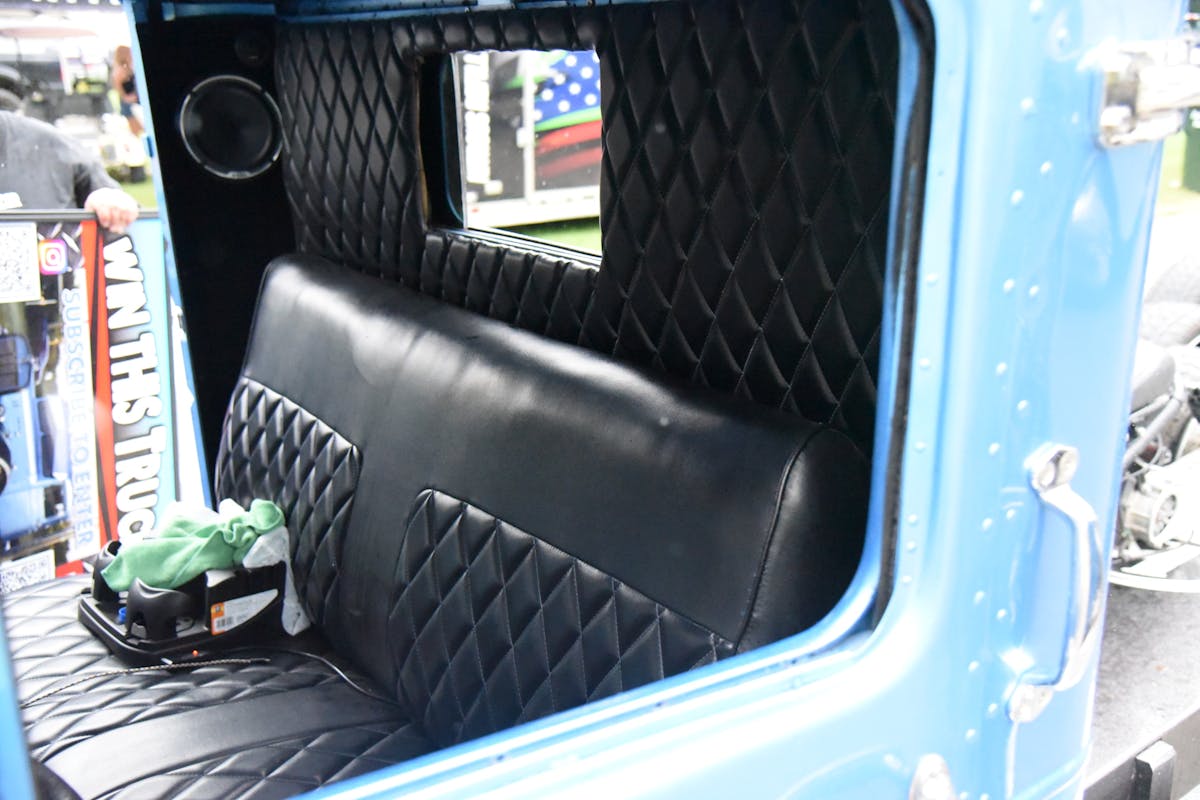 When it was new, the interior in ’48 could best be described as sparse, and that theme remains — mostly. While it looks period correct, what you might not notice is the addition of a very serious sound system that was installed by Audio Pros.