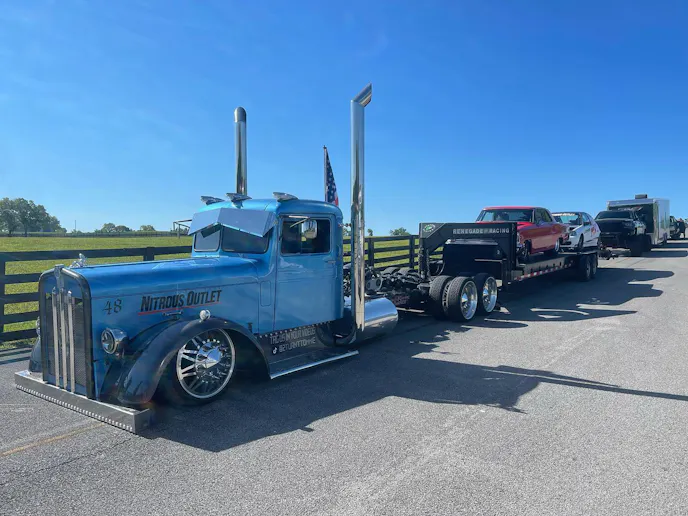 Thomas’ story with the vintage KW begins when he and his shop Renegade Racing needed something special to haul cars to events and such. While looking for the perfect “rig”, he found this cool hauler that was originally built by Jeff Jones.