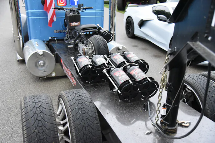 Thomas tells us the construction began when Jeff placed the seasoned “lightweight” cab and hood on a 1977 GMC motorhome chassis. Aside from the airbags, the chassis is rebuilt to factory specs. That includes the GM disc brakes. However, Thomas did say that a hydroboost system was added to give the brakes a little more grabbing power with less effort.
