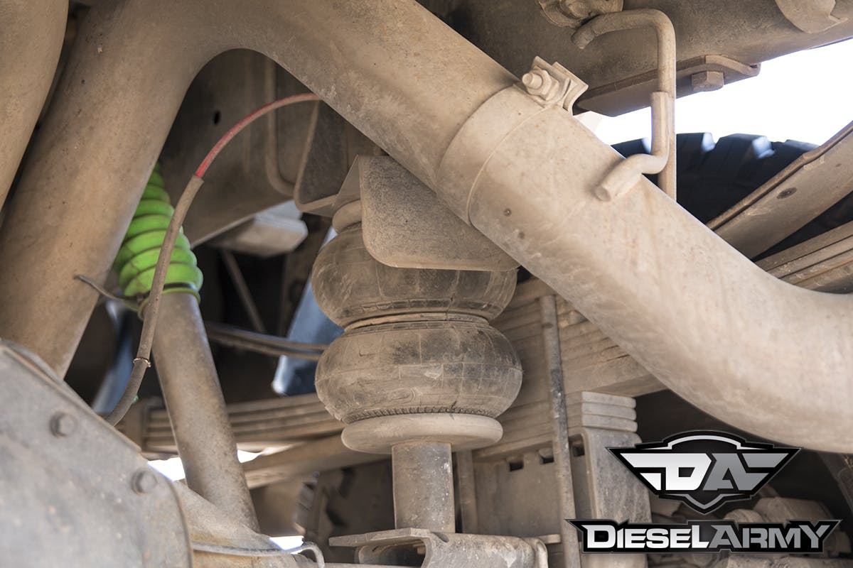 A set of Firestone Ride Rite air bags in the back help keep the truck level when it is hooked to a trailer. Proper owns a mobile detail company and the truck is pretty much hooked to a trailer everyday (hence, the tranny problems).
