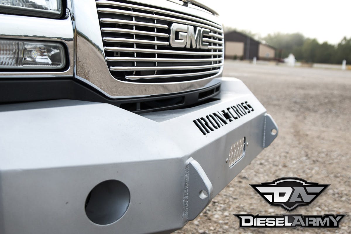 If the lift and tire package isn’t enough to set the truck apart, Strube added a Putco stainless grille shell along with Iron Cross front and rear bumpers painted to match. Some of the subtle things he added were 2006 GMC towing mirrors, a billet GMC emblem in the grille, and swapped out the tail lights for a set of Recon LED tail lights. He added a Truxedo tonneau cover.