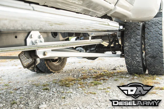 With the truck lifted this much, small wheels just wouldn’t look right. A set of forged aluminum Rickson Wheels LTS 19.5×6.75-inch wheels were installed along with some 265/70R19.5 Goodyear G124 tires.