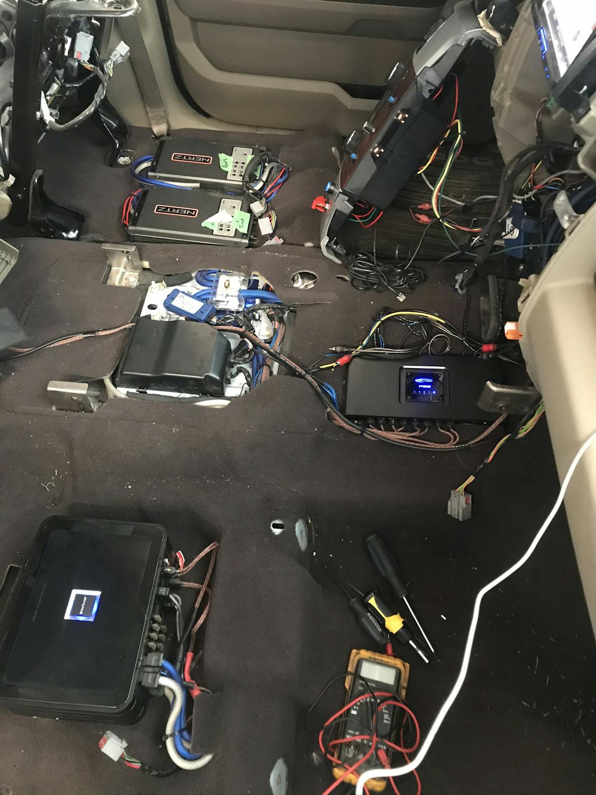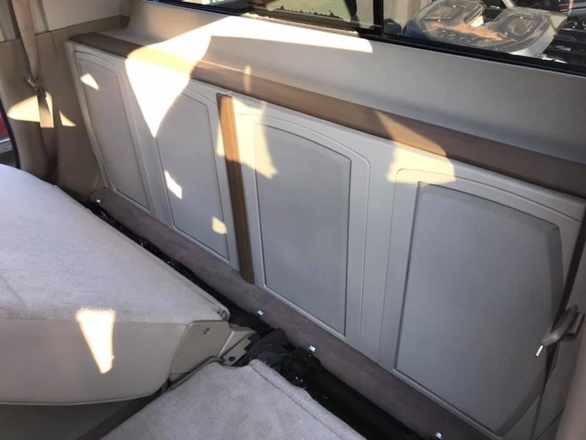 Clark is passionate about horsepower and torque, but he also has a passion for music. With that said, the upgrades didn’t stop under the hood. The entire interior was removed and the cab was layered with a sound-deadening mat and 1/2-inch sound-absorbing foam. This controls the vibrations coming from the custom subwoofer enclosure outfitted with eight 8-inch Alpine subwoofers.