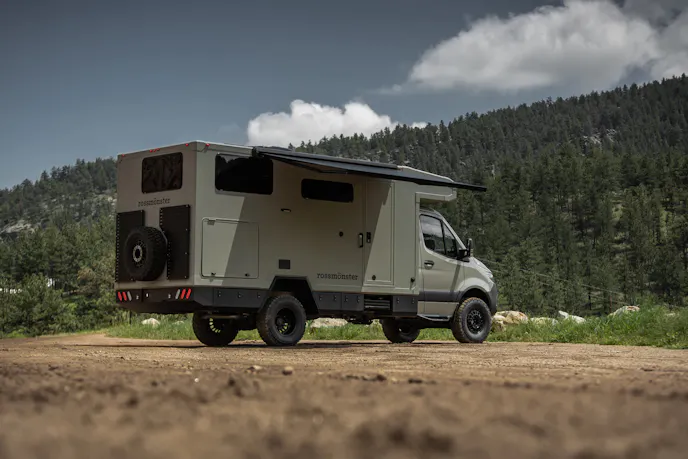 At its core, the Rossmonster Havn is powered by a diesel powertrain (2.0-liter four-cylinder turbodiesel with 208 hp and 332 lb-ft of torque) and equipped with a Van Compass Stage 4.3 suspension. Add in the Super Single conversion and you’ve got a vehicle ready for rough roads, sandy deserts, or snowy mountain passes. The composite camper shell provides a lightweight yet durable build, while rear MOLLE panels, exterior storage cabinets, and a watertight garage ensure all your gear has a secure place. For added versatility, a roof-top tent upgrade is available, expanding sleeping capacity and outdoor adventure options.