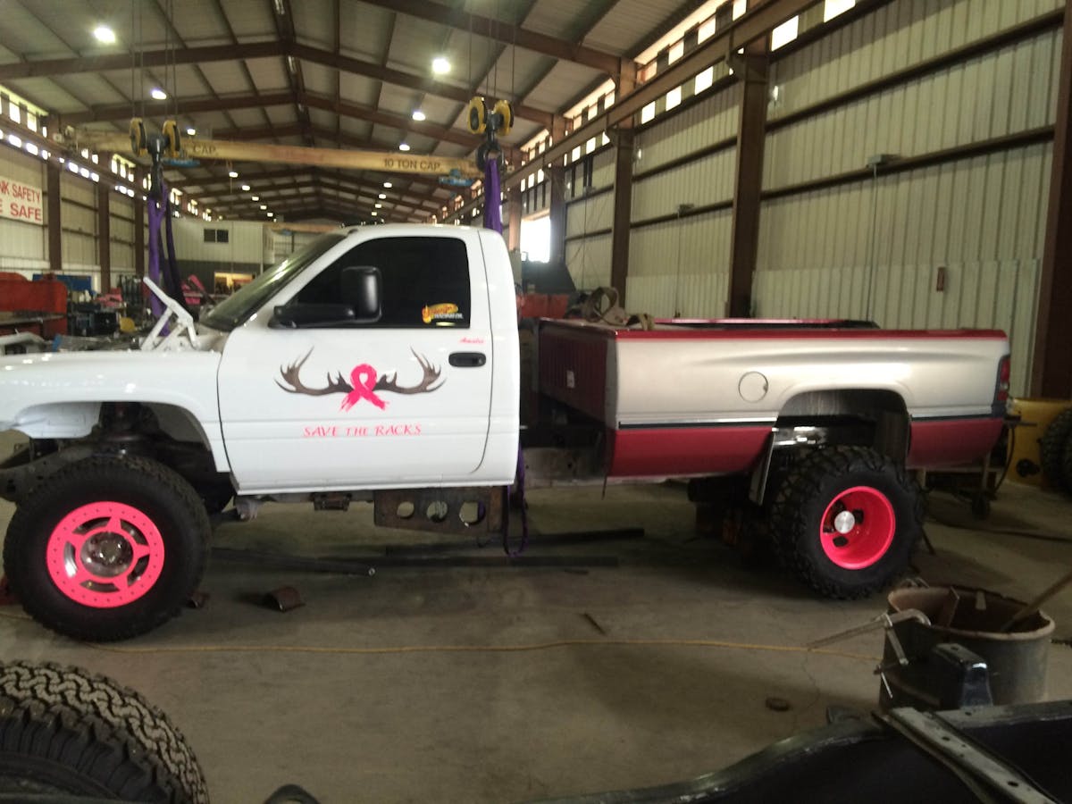 When the race truck was about as done as any race vehicle really ever gets, Amalee headed off to nursing school. Edgar and Kevin continued on and located a 2001 Ram as a donor truck to build into a puller. Being a family inspired by the hardships of breast cancer as well as avid hunters, the truck was aptly named “Save The Racks.”