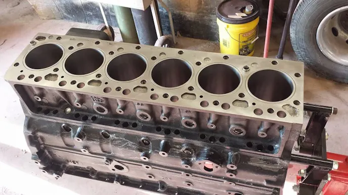 What is that setup you ask, well, he is still running a 5.9l block with a standard bore, but it has been filled to help strength it. The crank has been balanced and polished and is held in place with a 14mm girdle. The rods have been balanced, polished, heat treated and shot peened by Haisley. The pistons are fly cut and are coated with a high temp coating to help them last. To ensure that blow by is reduced as much as possible, Jackson opted for gapless rings. To finish the short block off, a Haisley billet camshaft was installed.